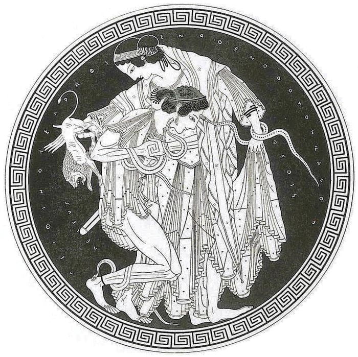 “Be silent, store not up such thoughts in thy heart, my child. Let the son of Leto be my witness, he who of his gracious will taught me the lore of prophecy, and be witness the ill-starred doom which possesses me, and this dark cloud upon my eyes, and the gods of the underworld —and may their curse be upon me if I die perjured thus—no wrath of heaven will fall upon you two for your help to me.”